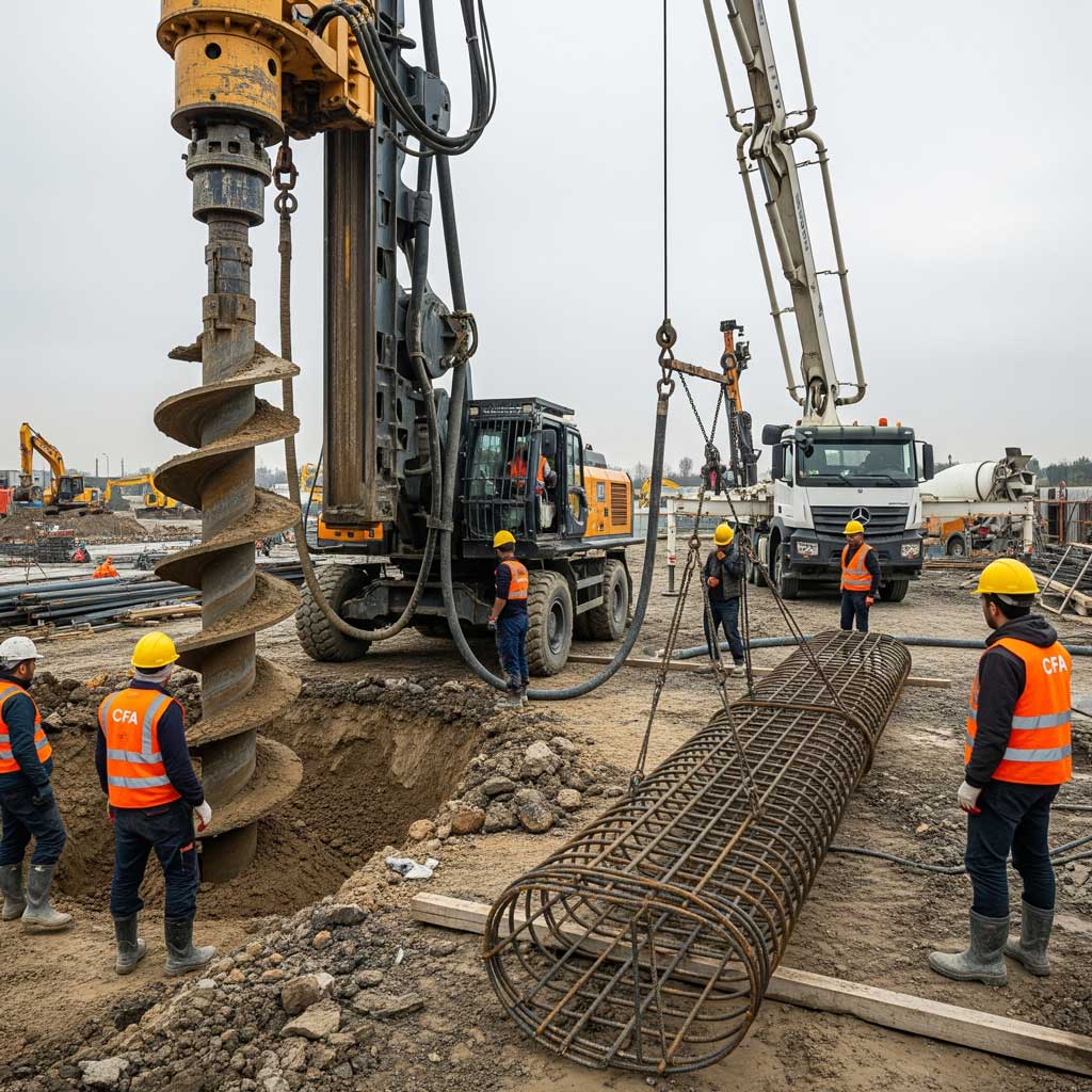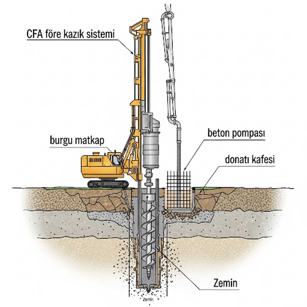 CFA fore kazık yönteminin işleyişini adım adım inceleyelim:
